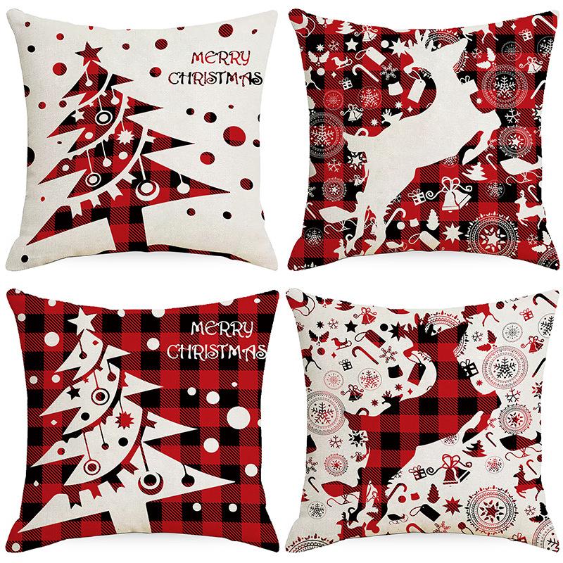 New Christmas Linen Pillow Cover Plaid Print Home Sofa Car Cushion Cover