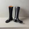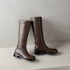 Autumn and winter women's solid leather fashion boots medium heel large size women's boots black cowhide square heel side zipper high boots