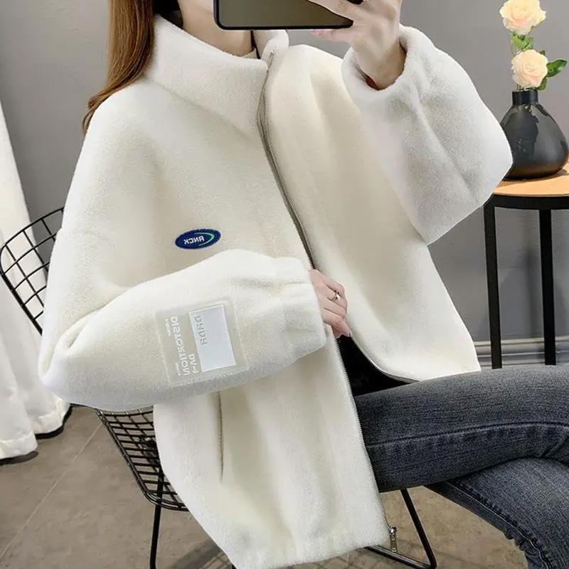 Coat for Women Fleece Thickened Plush Autumn Winter Stand Collar Top Oversize Casual Zipper Jacket
