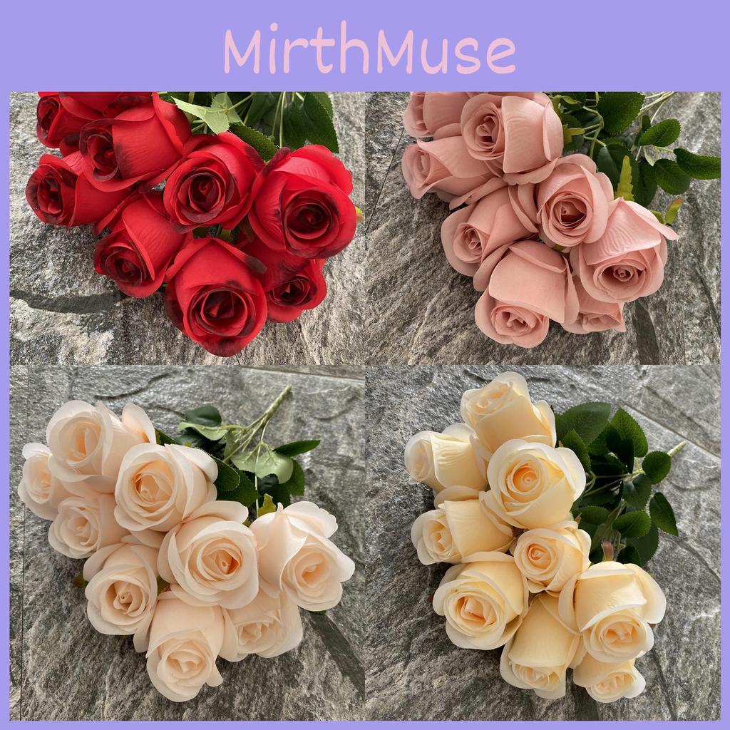 Rose Silk Realistic Buds 9 Stems Artificial Flowers Home Decor Props Photography