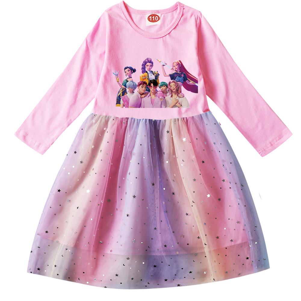 Rochie Casual din Bumbac cu Mâneci Lungi cu Paiete Curcubeu cu Imprimeu Anime Desene Animate K-Pop Rumi Zoey Mira pentru Copii Fete