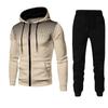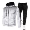 New Polka Dot Print Solid Color Zipper Set Autumn and Winter Plus Velvet Men's Sports Hoodie Sweatshirt and Sweatpants