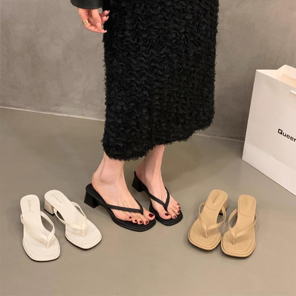 French versatile flip-flop shoes women's shoes fashion wear 2025 new summer high heel sandals