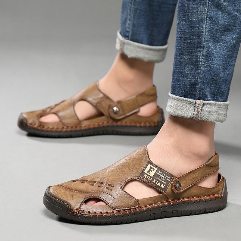 Sandale de vară pentru comerț exterior pentru bărbați, din piele, pentru exterior, de plajă, casual, mărime mare, pantofi pentru bărbați, cu cap în geantă, papuci cool cu dublă utilizare