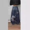 Pantaloni Jeans Dama Largi Skinny Four Seasons cu Broderie Hip Hop Gradient Casual