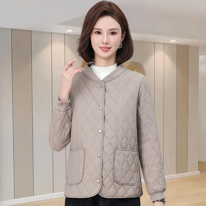Rhombus padded cotton-padded clothes women's short models, new fashion middle-aged mother clothes, large pockets, warm cotton-padded jacket.