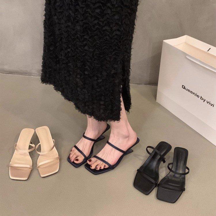 Design sense niche French word with sandals women 2025 summer new high-heeled wedge sandals high-heeled slippers women