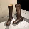 New women's leather boots leather large size tall boots autumn and winter round head versatile cowhide thick bottom non-slip Martin boots women