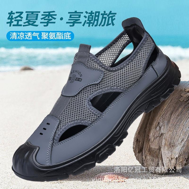 Pantofi de vad bărbați vară respirabili pantofi bărbați plasă pantofi cu găuri goale sandale de casă exterior casual pantofi de plajă cu vârf acoperit pentru bărbați