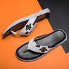 Plain version dynamic cool slippers men's summer toe flip-flops men's cowhide sandals men's shoes first layer beach shoes comfortable