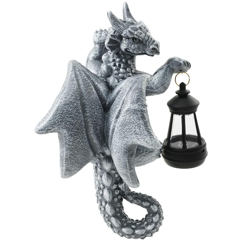 Dragon Figure with Solar Lights Resin Funny Dragon Figure Garden Decoration Yard Sculpture for Festival Outdoor Decor