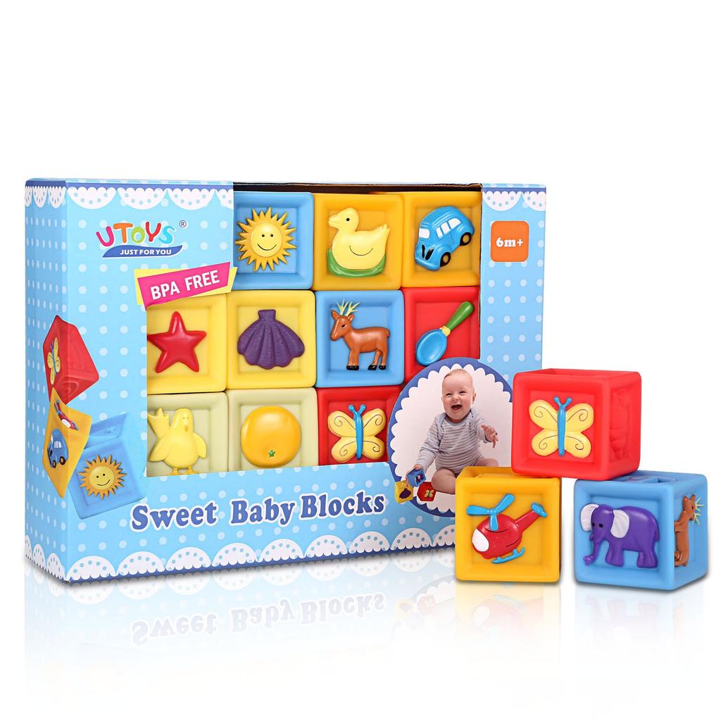 [Safe Materials] Made with eco-friendly rubber that feels similar to human skin and safe paint that complies with food hygiene laws, the colors will not fade or transfer, making it safe for children to lick. The easy-to-hold size and rounded corners allow babies to play safely. [Abundant Colors & Designs] Each of the six sides of the toy features a different embossed design. As children shake, stack, and roll the blocks, they naturally learn basic concepts of shapes while developing awareness of colors, numbers, weather, animals, and vehicles. [Sound-making Building Blocks] More than just simple building blocks, the toy makes a beeping sound when a baby grasps it, capturing their attention for an instant and developing motor skills while also cultivating manual dexterity, concentration, and hearing. [Various Ways to Play] As building blocks, various shapes can be assembled, and the material is resistant to breakage even when dropped from a height. Parents can also throw the blocks like balls. They can also be submerged in water for bathtime play. [Set Contents] 10 building block pieces. *All toys sold by Bemixc Direct are packaged with a Christmas cart. They are carefully packaged and can be played with for a long time.
