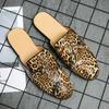 Men's leather slippers heelless large size bag head half slippers men's European station one pedal lazy shoes men's leopard print