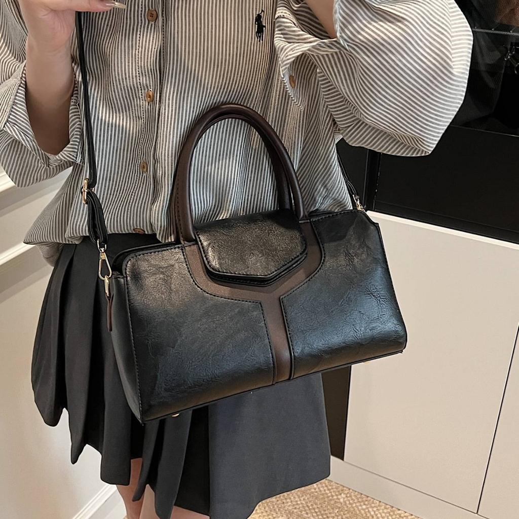 2025 new fashion simple foreign style large capacity shoulder bag oblique span bag simple splicing commuter tote bag