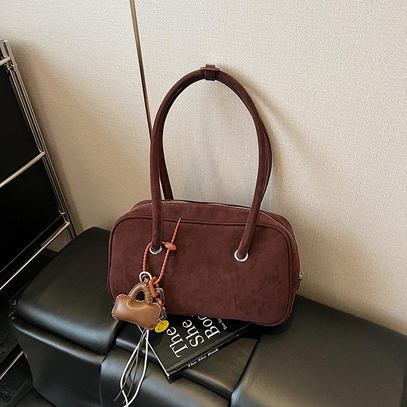 Korean version niche retro suede shoulder bag women's 2025 new simple daily commuter handbag shoulder bag