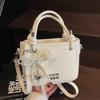 Spring and summer popular solid color simple high quality lychee pattern portable bucket bag women's fashion versatile commuter messenger bag