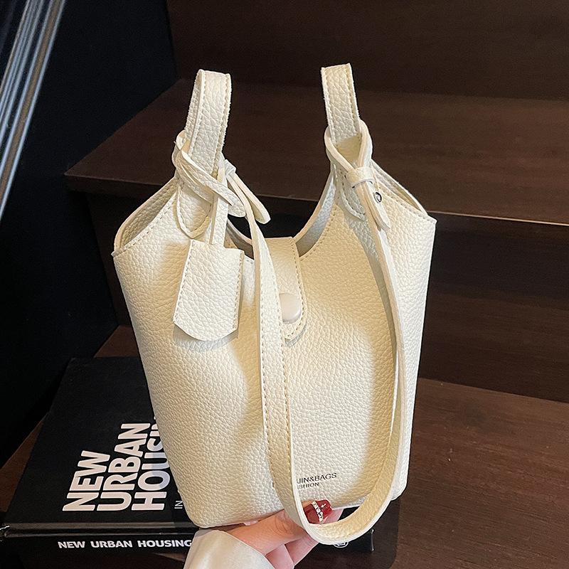 Fashion New Design Korean Simple Lychee Pattern Bucket Bag Women's Commuter Casual Versatile Commuter Messenger Bag