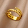 Retro Titanium Steel Ring Female Golden Snake Versatile Simple Hip Hop Personality Open Snake Hot Selling Trend