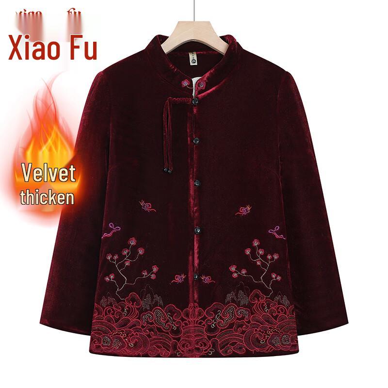 Elderly Women's New Chinese Style Gold Velvet Long Sleeve Top