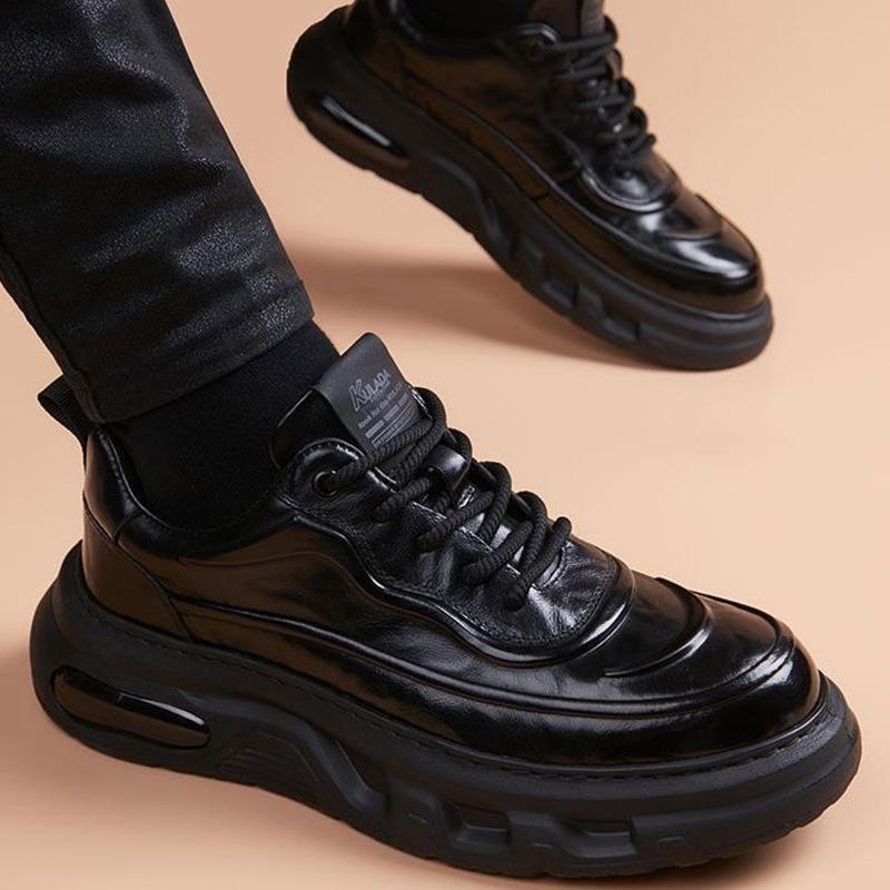 Casual leather shoes men's new sports style soft-soled Derby shoes youth versatile British leather thick-soled heightening men's shoes