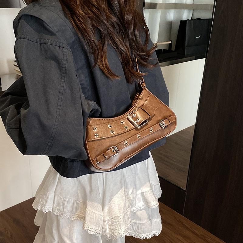 Cool Spice Girls 2025 Spring New Women's Bag Personalized Locomotive Wind Shoulder Bag Retro Belt Buckle Simple Messenger Bag
