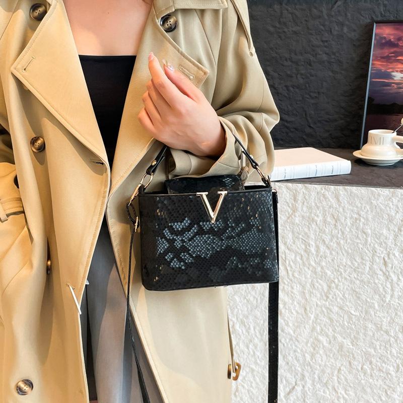 2025 light luxury high-end fashion women's handbag snake pattern versatile shoulder bag simple atmosphere messenger bag