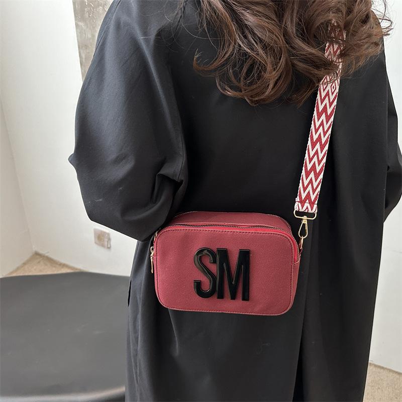 Personalized fashion trend women's bag casual versatile niche letter small square bag wide shoulder strap popular single shoulder messenger bag