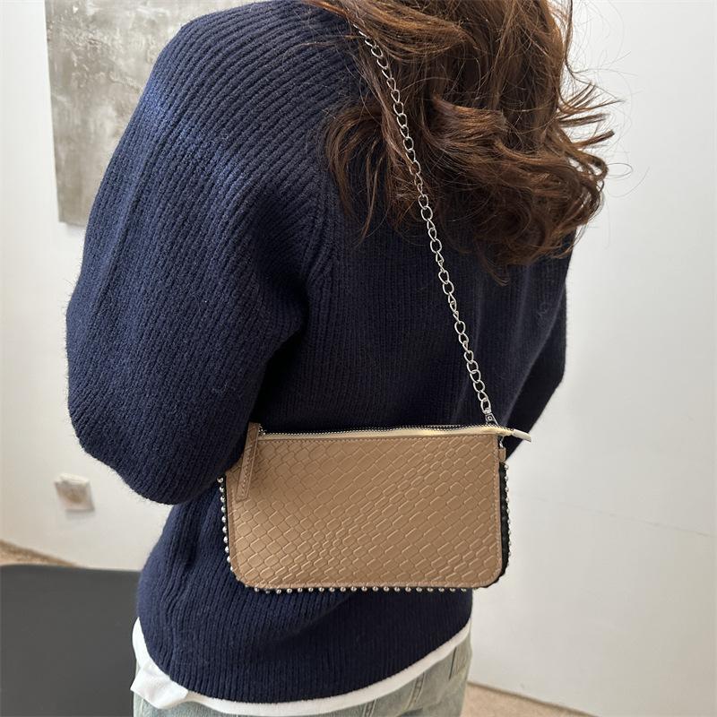 New chain tote bag high-end niche design chain shoulder bag clutch bag solid color simple messenger bag women