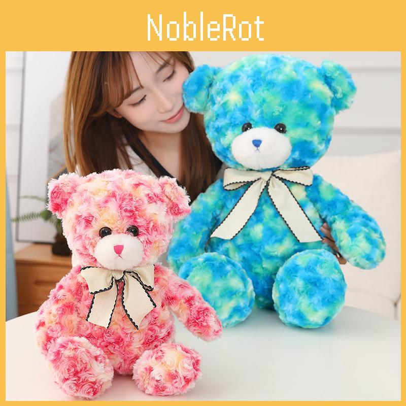 Bow Ribbon Colorful Teddy Bear Plush Toy Stuffed Animal Doll Gift Decoration