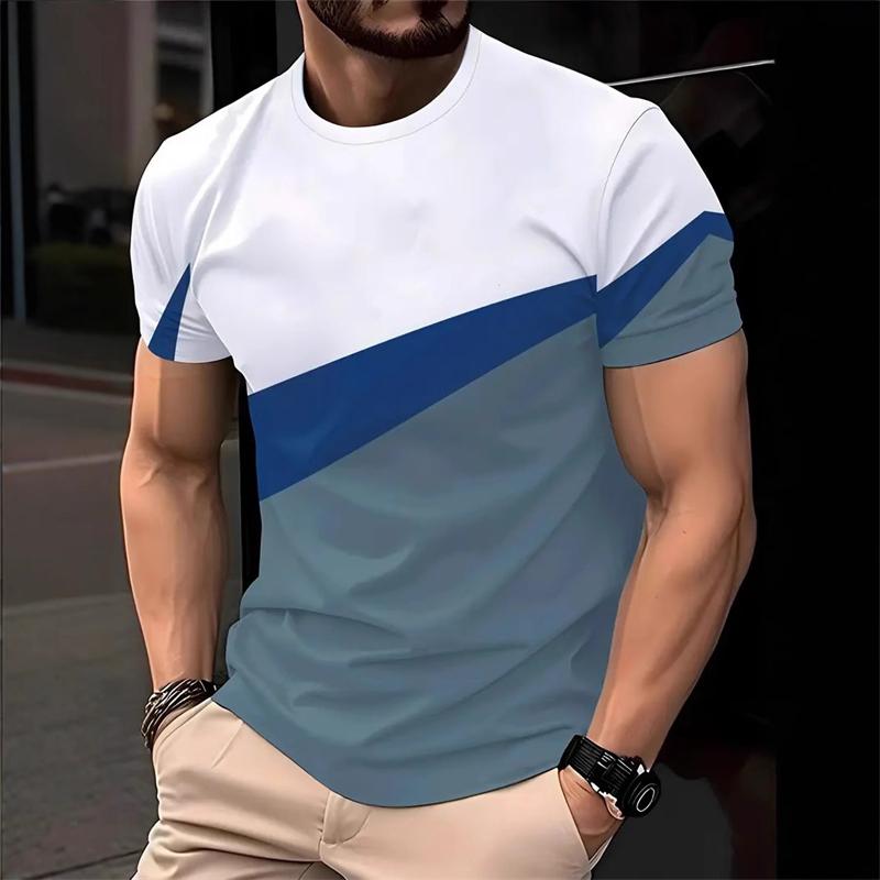 Simple striped contrasting color men's T-shirt fashionable summer short sleeved 3D printed T-shirt loose street wear Harajuku T-shirt