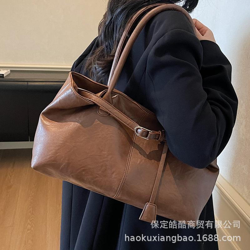 Large-capacity bag women's 2025 new autumn and winter light luxury niche high-end retro shoulder bag commuter tote bag