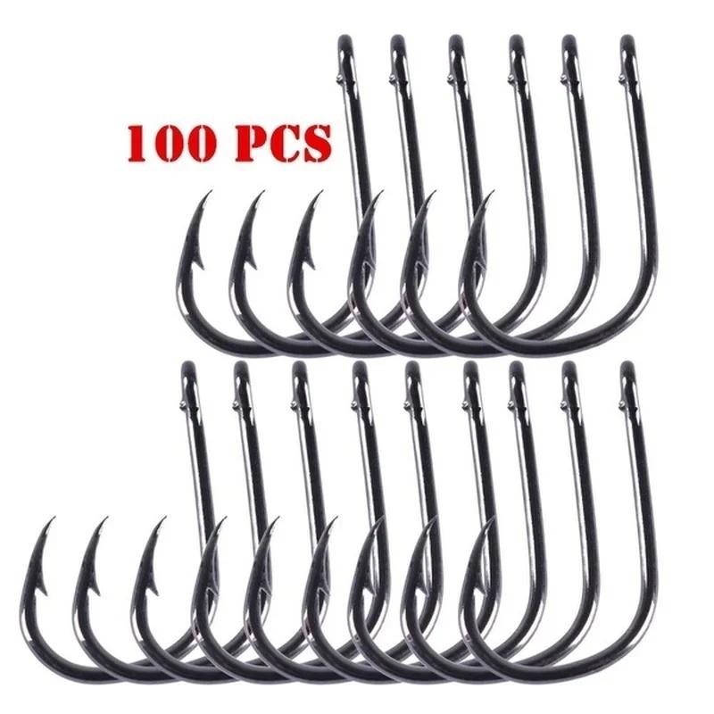 100 buc/lot Cârlige de pescuit Dublu suport momeală Cu barbă Cârlige de pește cu tija lungă Oțel carbon Ascuțit Cârlig de pește Plajă și Cârlige de pescuit pentru momeală vie