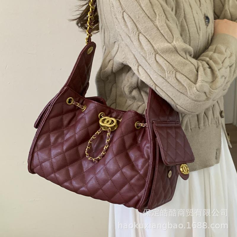 Rhombus embroidery thread small bag women's 2025 new fashion super fire versatile single shoulder underarm bag popular bucket bag
