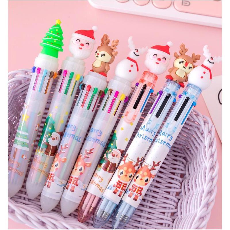 Christmas Ballpoint Pen Press Type 10 Color 6-color Ballpoint Pen Color Multifunctional Marker Pen Creative Stationery Wholesale