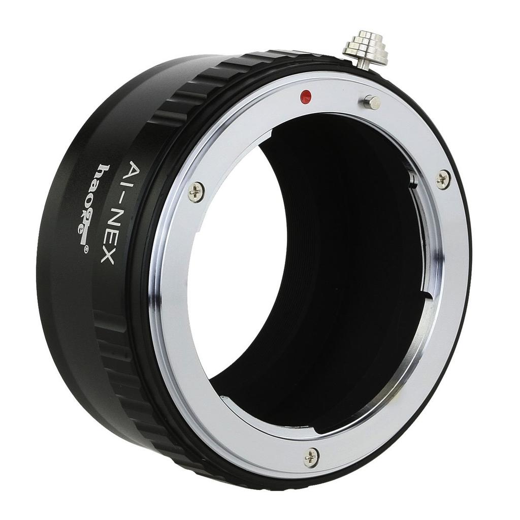 This Haoge adapter allows you to mount Nikon AI mount lenses onto Sony E mount cameras.