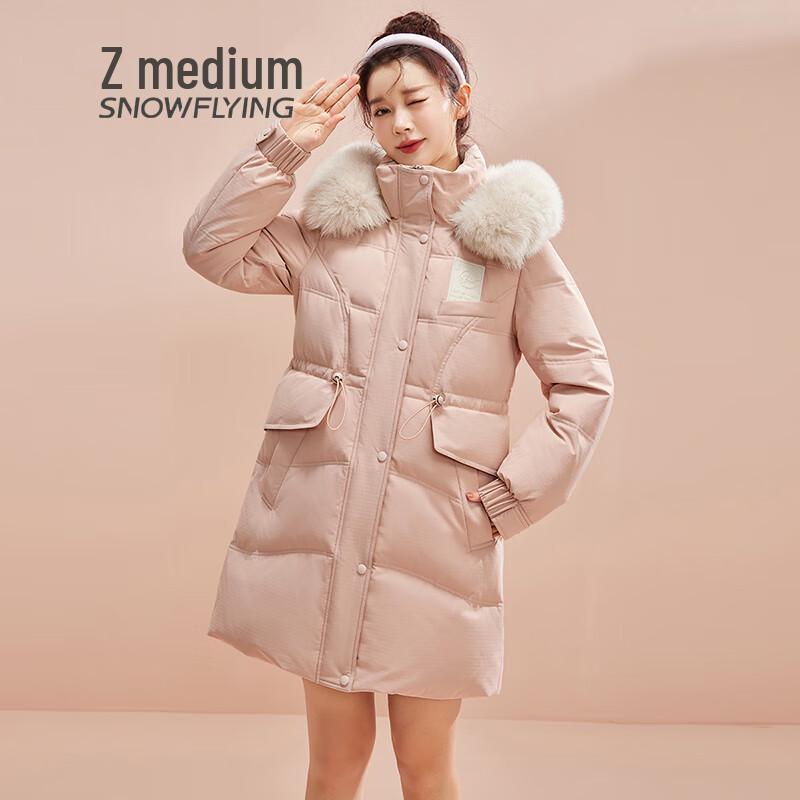 SNOWFLYING Women's Faux Fur Trim Hooded Mid-Length Down Jacket