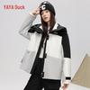 Stay warm and stylish with the YAYA Women's Hooded Short Down Jacket. Featuring a loose fit and contrast color design, it's perfect for autumn and winter outdoor activities. Filled with 90% or more high-quality duck down, this thickened jacket offers excellent windproof and thermal insulation, suitable for temperatures from -10°C to 5°C. It includes a convenient zipper closure and practical pockets, all crafted from 100% polyester fiber.