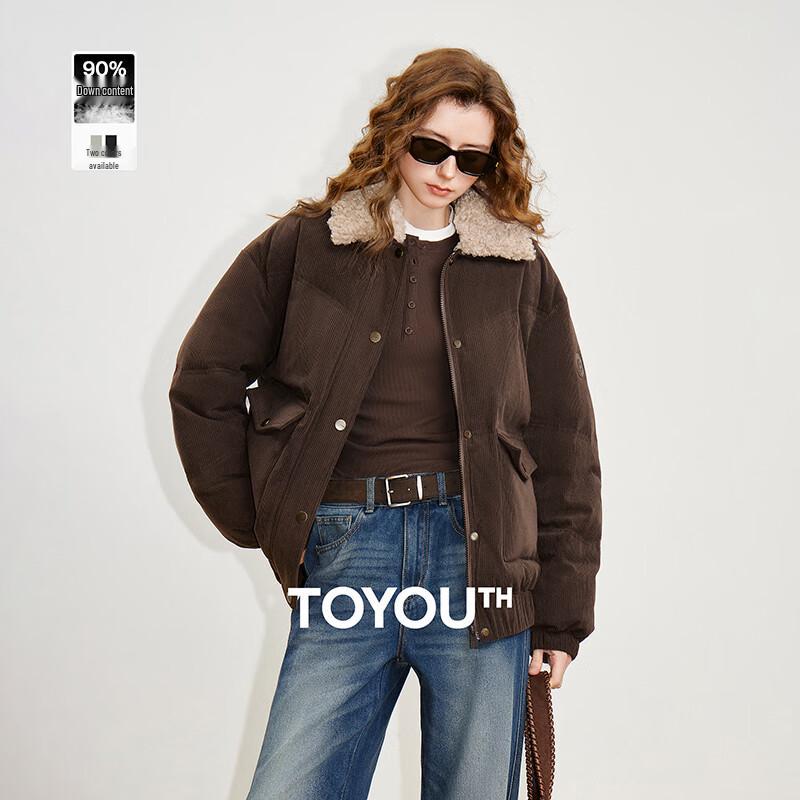 Chuyu Women's 2025 Winter Corduroy Down Jacket with Lambswool Collar