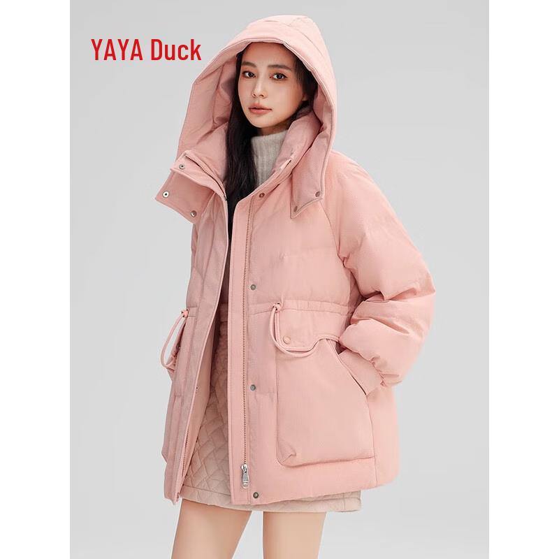 YAYA 2025 New Women's Waist-Cinching Detachable Hood Down Jacket