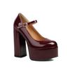 Pantofi cu toc înalt pentru femei, într-un cuvânt, piele lăcuită, vârf rotund, impermeabili, platformă, talpă groasă, toc gros, toc super înalt, Mary Jane, pantofi simpli pentru femei, înalți
