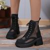 New thick-soled heightened square head summer British style small mesh high-heeled hollowed-out versatile cool boots women's shoes
