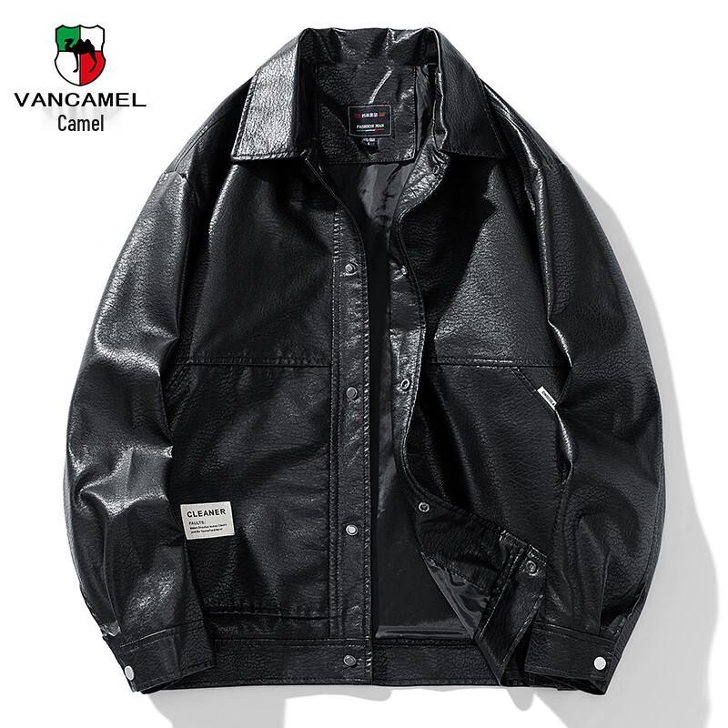 VANCAMEL Men's Autumn/Winter Lapel Motorcycle Leather Jacket