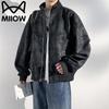 Maoren Men's American Retro Stand Collar Faux Leather Jacket
