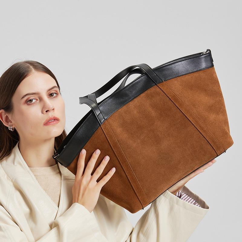 Frosted cowhide temperament simple and versatile splicing commuting autumn and winter new single shoulder portable large-capacity women's bag