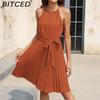 BITCED Summer Women's Fashionable Elegant Wide-Strap Halter Neck Backless Dress