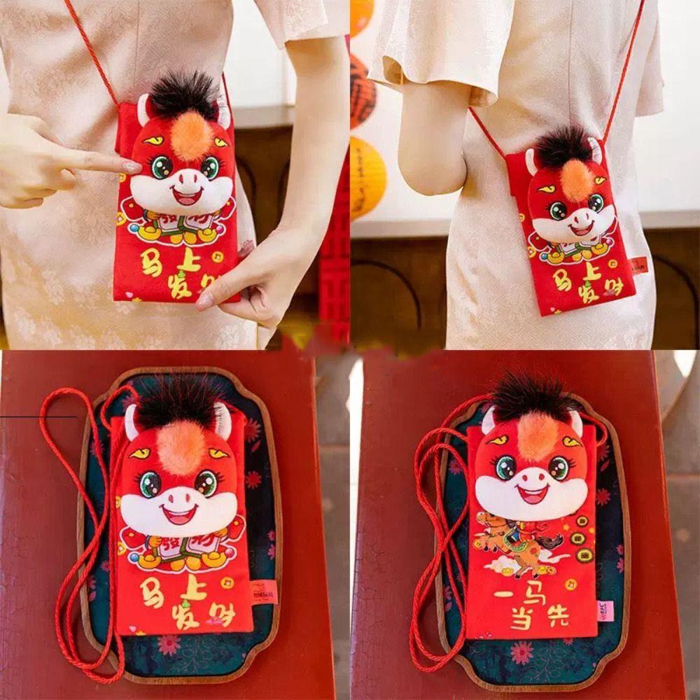 Cartoon Horse Year Money Bag Plush Horse Year Mascot Bag 2026 Red Envelope Bag Chinese New Year