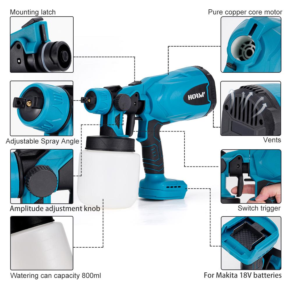 Cordless Electric Spray Gun 800ML Paint Spraying Tool Paint Sprayer Rechargeable Easy Spray Car Airbrush For Makita 18V Battery
