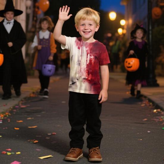 Tricou Halloween pentru copii, Tricou cu imprimeu pată de sânge, Tricou Spooky cu gât rotund și mânecă scurtă pentru costum de petrecere cu tematică horror, îmbrăcăminte de stradă
