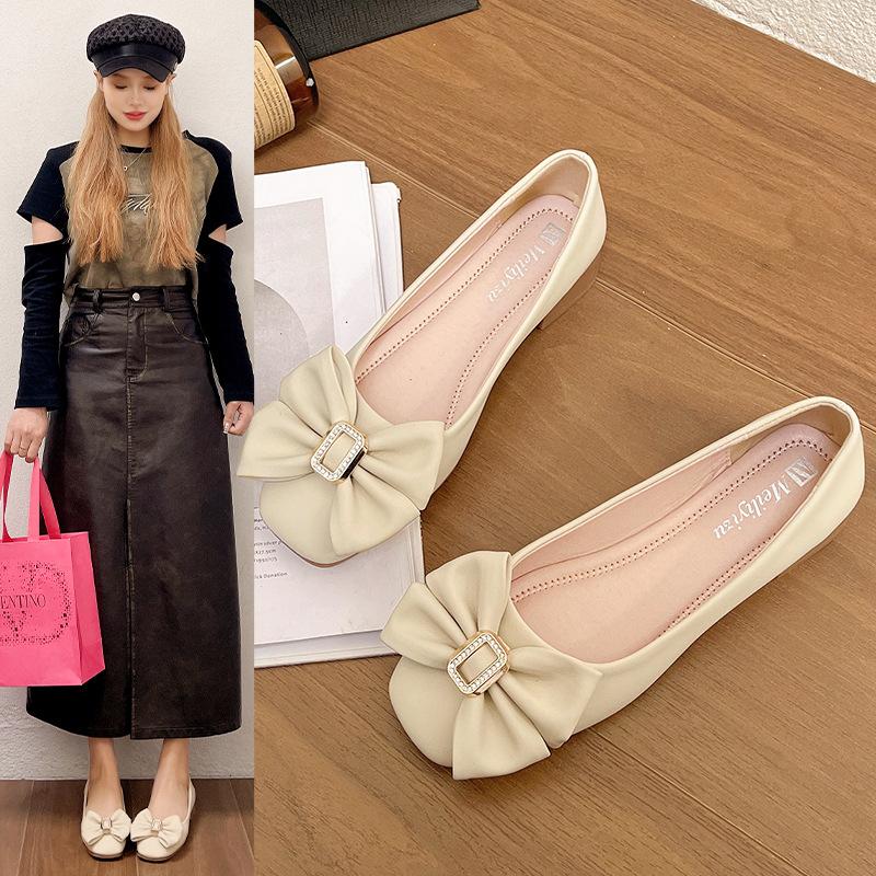 French evening single shoes women's thick heel soft sole new summer versatile bow light mouth gentle wind Doudou shoes