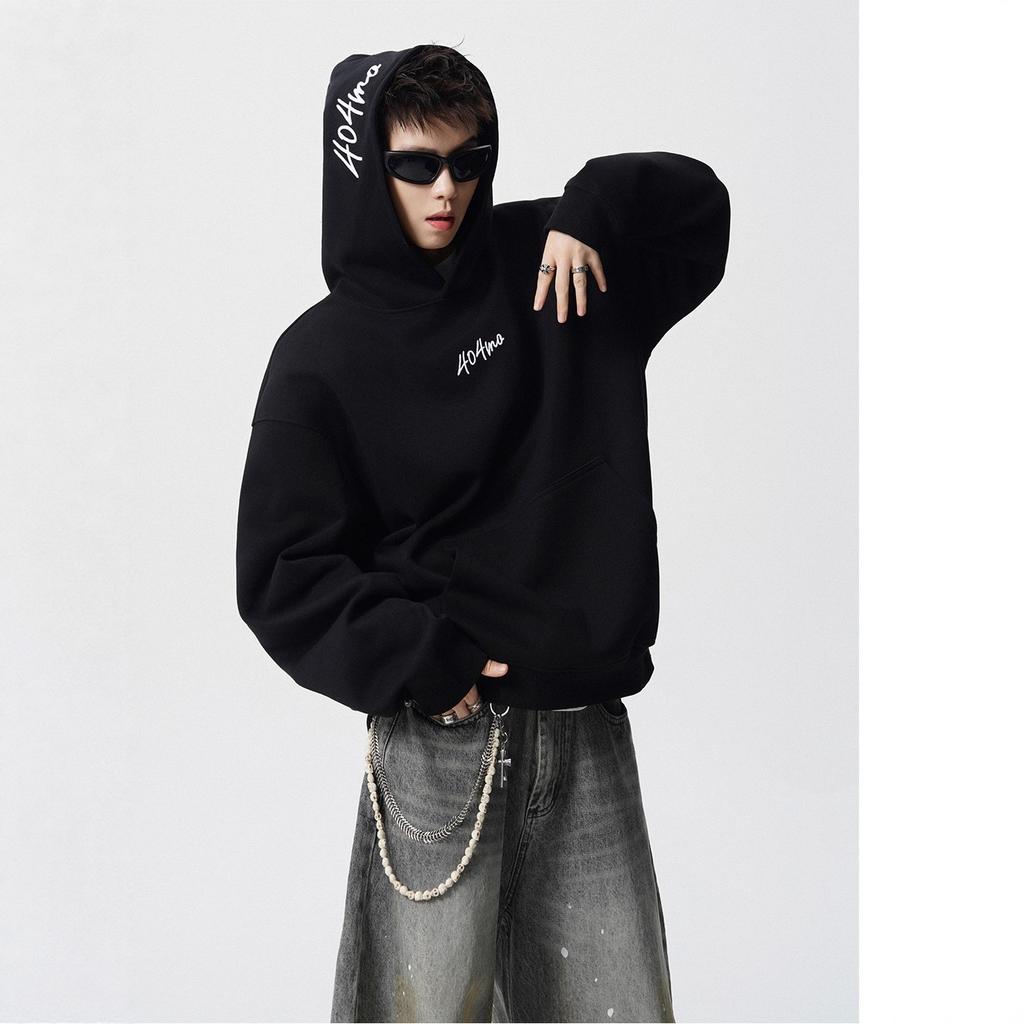 Letter Printing Plus Velvet Hooded Sweater Men's Winter High Street Casual Couple Hoodies Loose Joker Coat